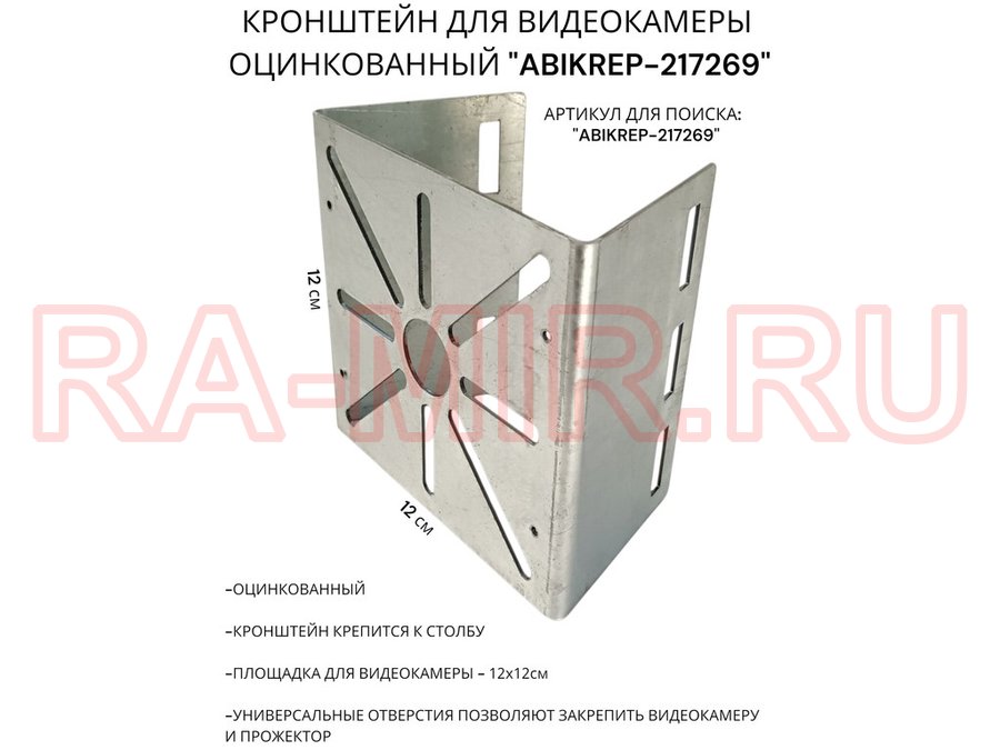 Кронштейн под коробку FOX для видеокамеры на столб оцинкованный "ABIKREP-217269" 12х12см,сталь 1,5мм