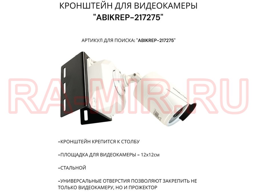 Кронштейн под коробку FOX для видеокамеры на столб, цвет черный "ABIKREP-217275" 12х12см, сталь 2 мм