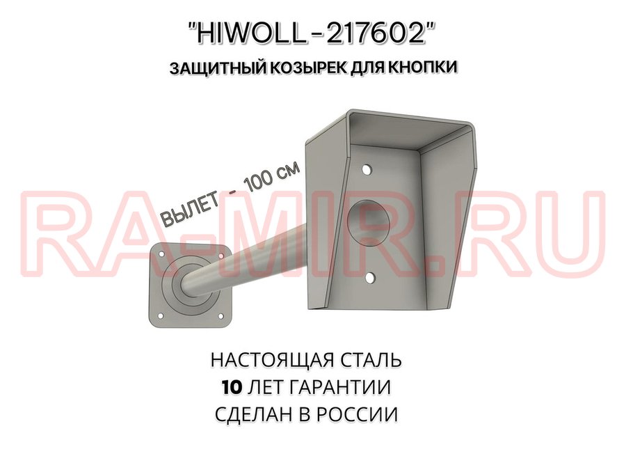 Стальной защитный козырек для кнопок выхода с вылетом от стены 100см "ВЫЗОВКРЕП-217602" серый,8х11см