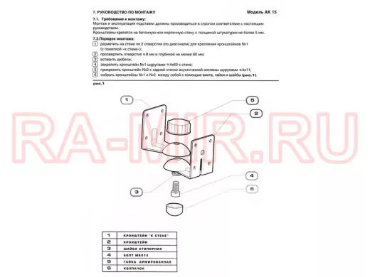 Заказать звонокКронштейн TRONE AK 15 Blk для акустики Нагрузка до 5 кг. От стены 10.0 см. , поворотные на 180 гр