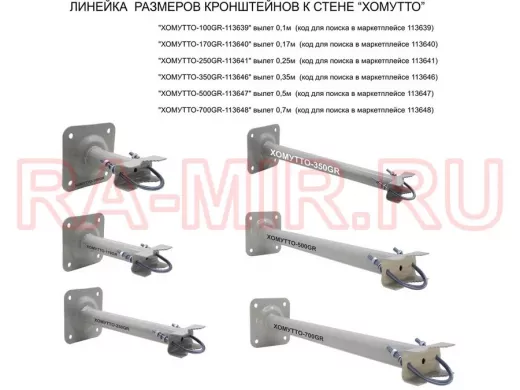 Заказать звонокКронштейн антенный "Хомутто-700-113648" серый, крепление мачт до 51мм к стене, вылет 0,7м, 32мм