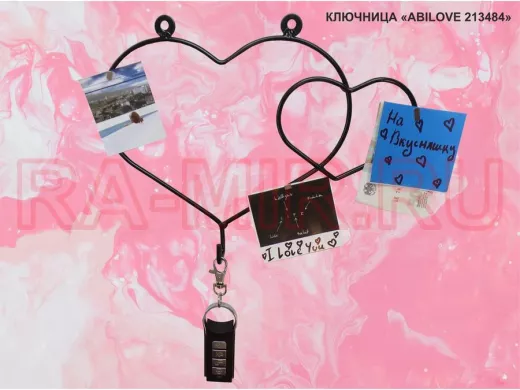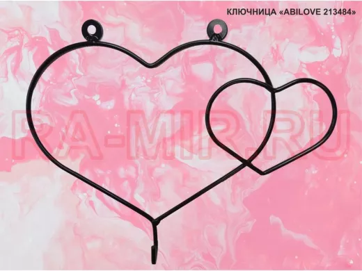 Ключница, держатель полотенец, вешалка в прихожую, два сердца с крючком, чёрный "ABILOVE 213484"