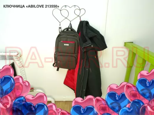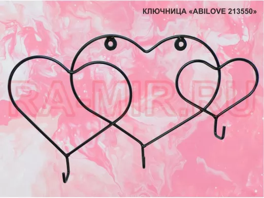 Заказать звонокКлючница, держатель полотенец, вешалка в прихожую, три сердца с крючками, чёрный "ABILOVE 213550"