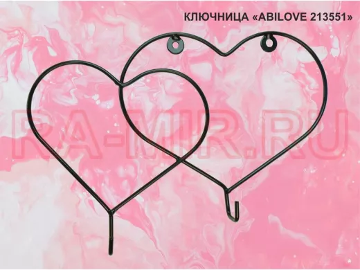 Заказать звонокКлючница, держатель полотенец, вешалка, два сердца с двумя крючками, чёрный "ABILOVE 213551"