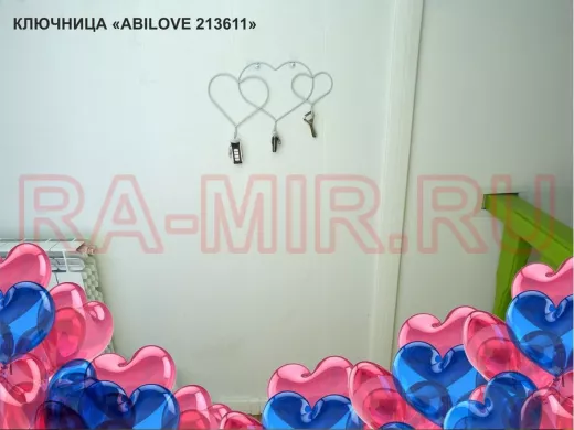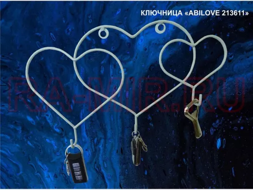Заказать звонокКлючница, держатель полотенец, вешалка в прихожую, три сердца с крючками, серый "ABILOVE 213611"