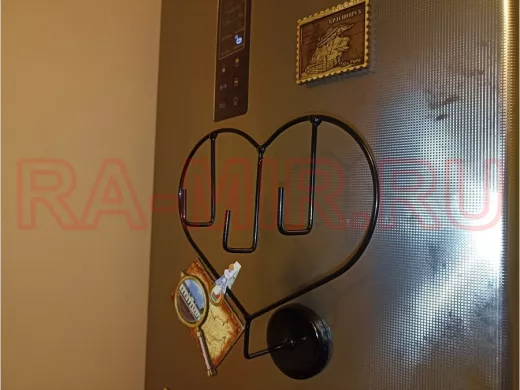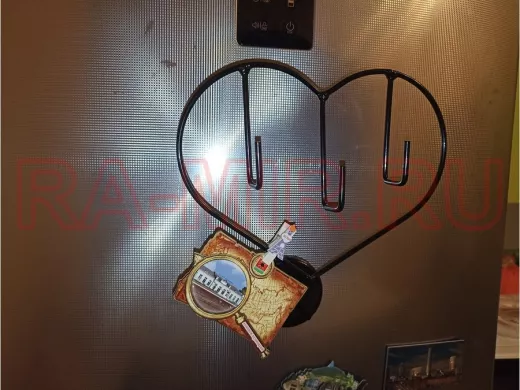 Заказать звонокМагнитное крепление "OSINCA 212243" сердечко на холодильник, 3 крючка,ЧЁРНОЕ, высота 16, ширина 21см