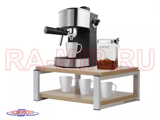 Заказать звонокПолка под кофемашину к стене, высота 17см, серый каркас "КОФЕиЯ 204527" полки 30х40см, дуб