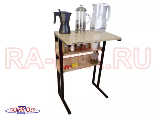 Заказать звонокСтолик для кофемашины "КОФЕиЯ 211929" высота 79 см с двумя полками для стаканов и банок ,черный, дуб