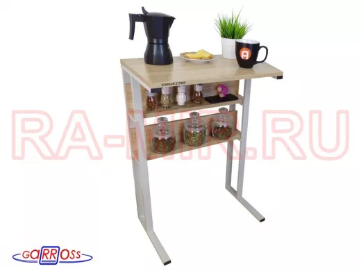 Заказать звонокСтолик для кофемашины "КОФЕиЯ 211930" высота 79 см с двумя полками для стаканов и банок, серый, дуб