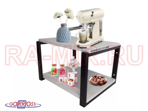 Заказать звонокПолка под кофемашину к стене, высота 27см, черный каркас "КОФЕиЯ 211380" полки 30х40см, сосна