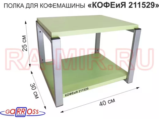 Заказать звонокПолка под кофемашину к стене, высота 27см, серый каркас "КОФЕиЯ 211529" полки 30х40см, салатовый