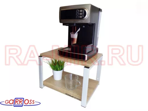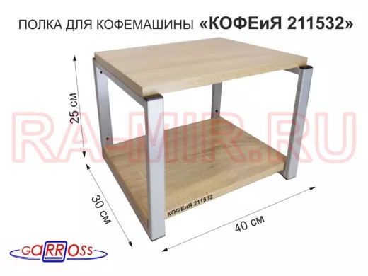 Заказать звонокПолка под кофемашину к стене, высота 27см, серый каркас "КОФЕиЯ 211532" полки 30х40см, дуб