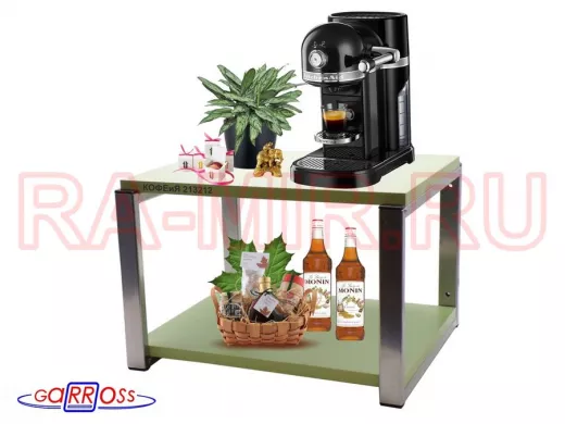 Заказать звонокПолка под кофемашину к стене, высота 27см, под хром каркас "КОФЕиЯ 213212" полки 30х40см, салатовый