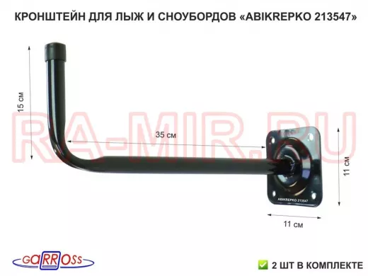 Заказать звонокКронштейны для лыж и сноубордов к стене "ABIKREPKO 213547" вылет 35см, высота 15 см,2 шт в комплекте