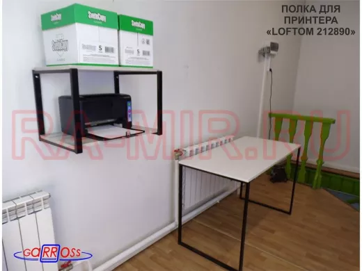 Полка под МФУ или принтер, высота 38см черный "LOFTOM 212890" две полки 35х54см, лофт