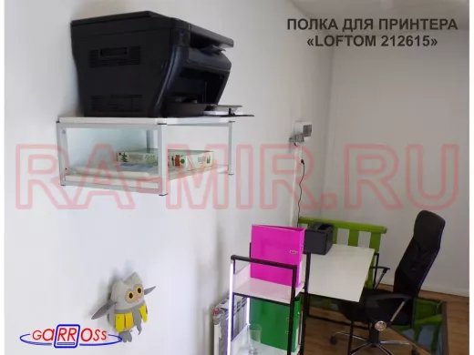Заказать звонокПолка для принтера, подставка для МФУ, 21см серый "LOFTOM 212615" две полки 35х54см,сосна выбеленная
