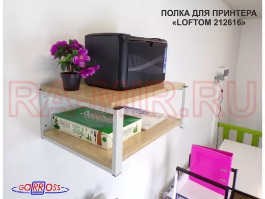 Полка для принтера, подставка для МФУ, 21см серый "LOFTOM 212616" две полки 35х54см, дуб сонома