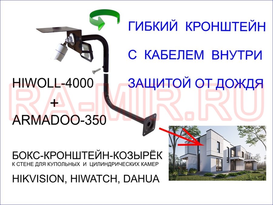 При монтаже можно кронштейн повернуть вниз, чтобы вода не попадала внутрь по кабелю (когда не используется дополнительная насадка).
