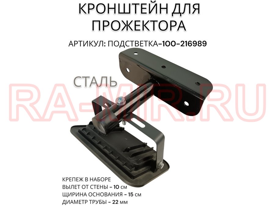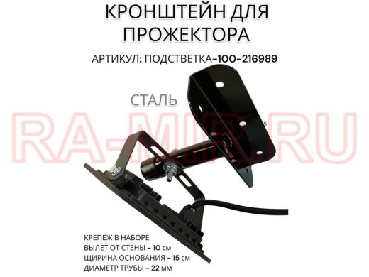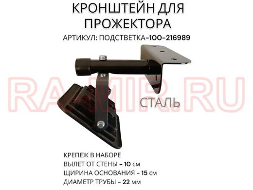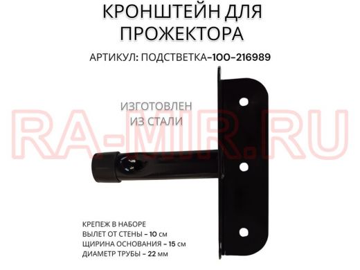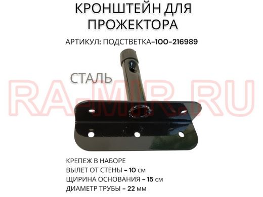 Кронштейн для прожектора "ПОДСВЕТКА- 100-216989" черный с уголком на рекламные щиты, вылет 0,1м