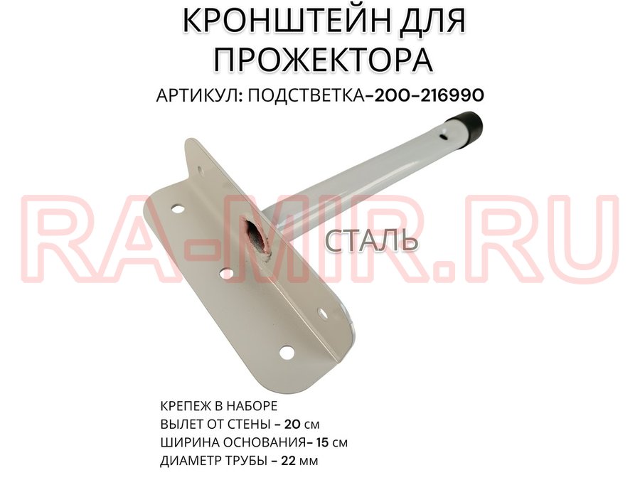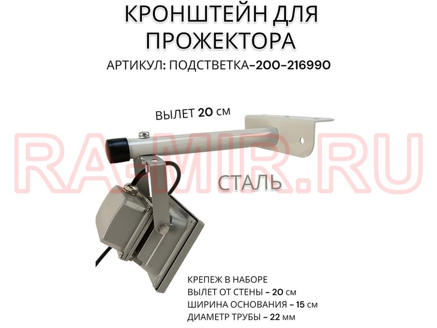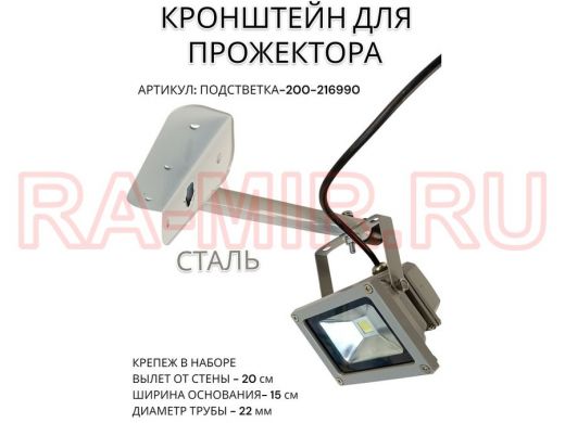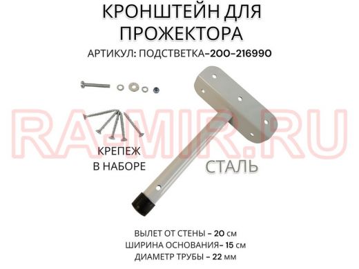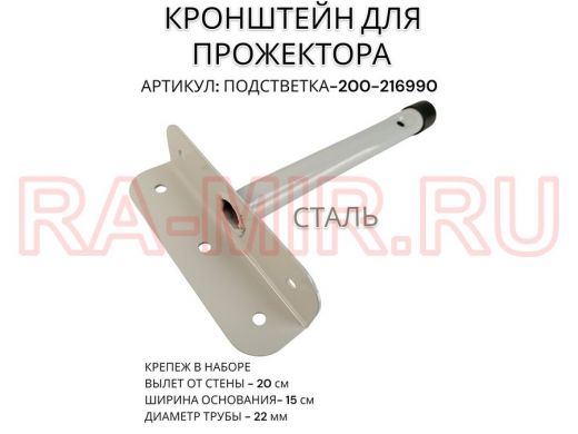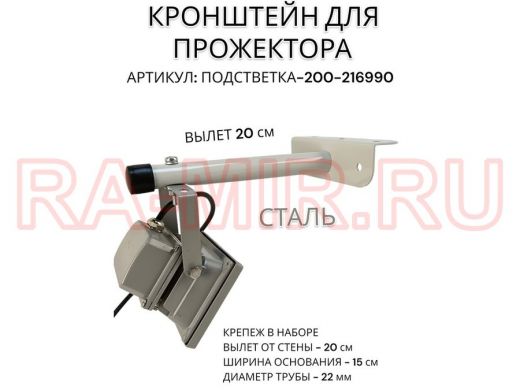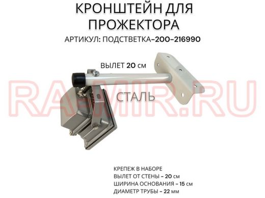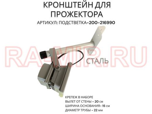 Кронштейн для прожектора "ПОДСВЕТКА- 200-216990" серый с уголком на рекламные щиты, вылет 0,2м