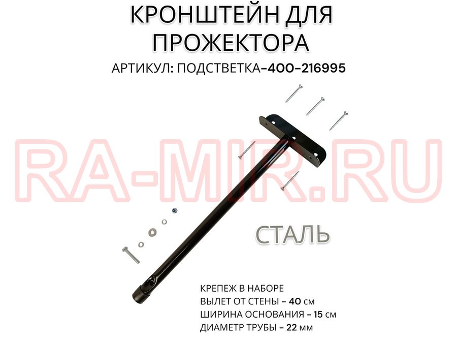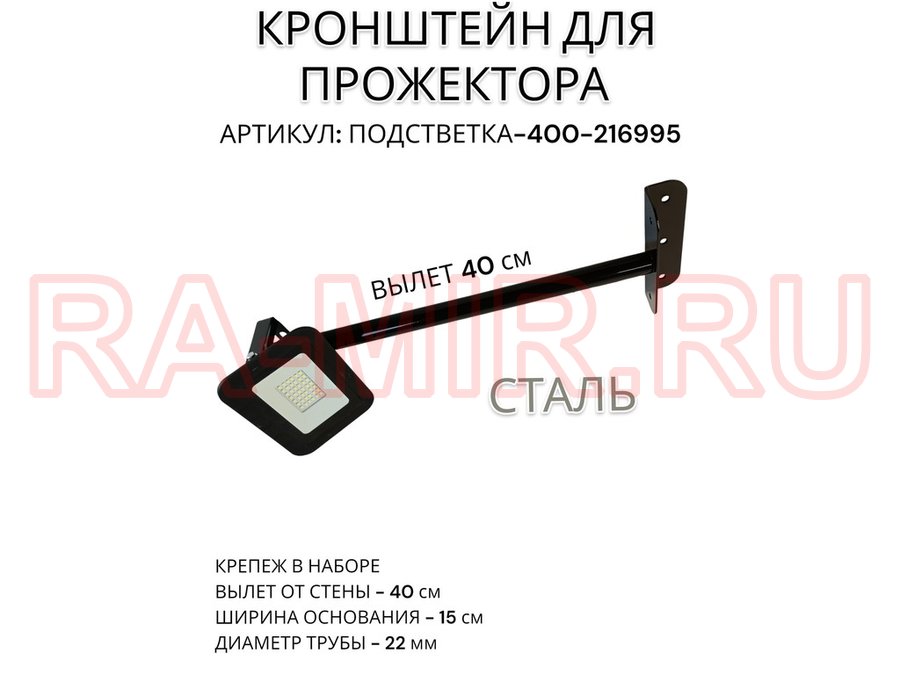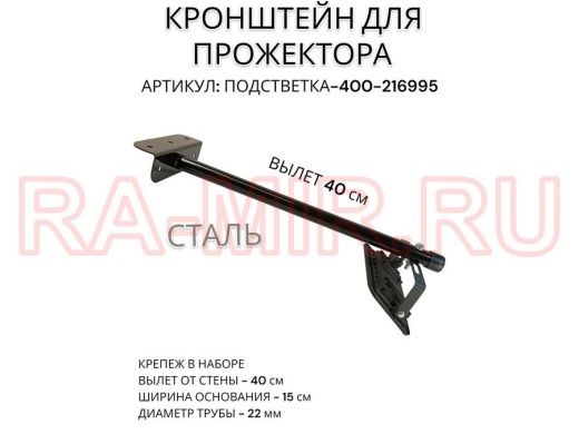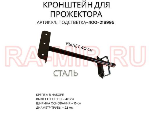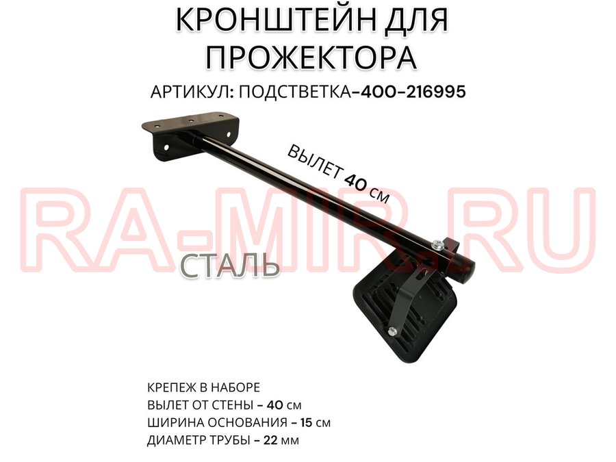 Кронштейн для прожектора "ПОДСВЕТКА- 400-216995" черный с уголком на рекламные щиты, вылет 0,4м