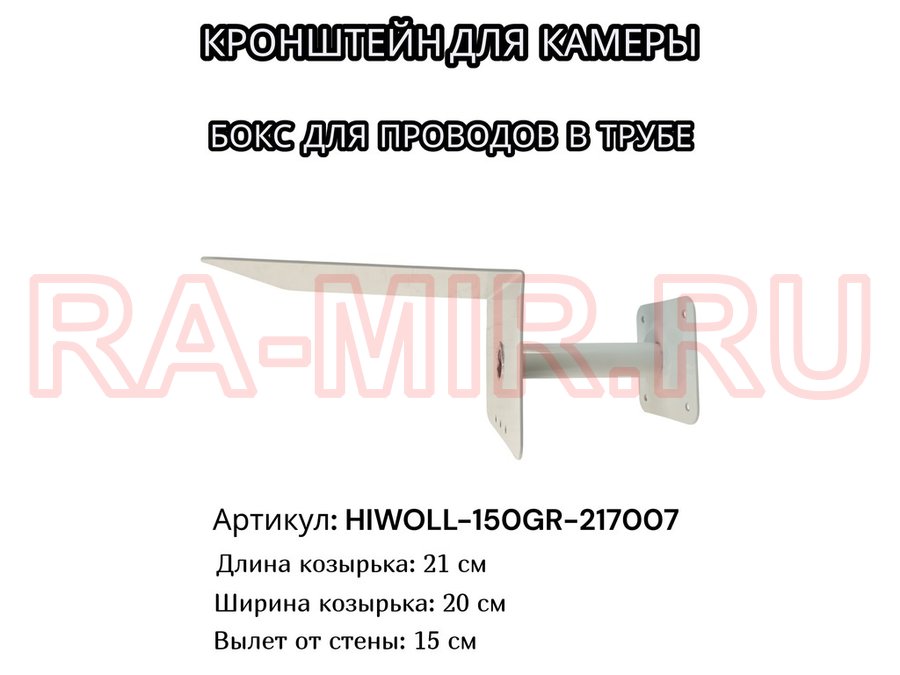 В корзину Купить в 1 клик Кронштейн для камеры и прожектора с козырьком "HIWOLL-150GR-217007" серый, вылет 15см, сталь