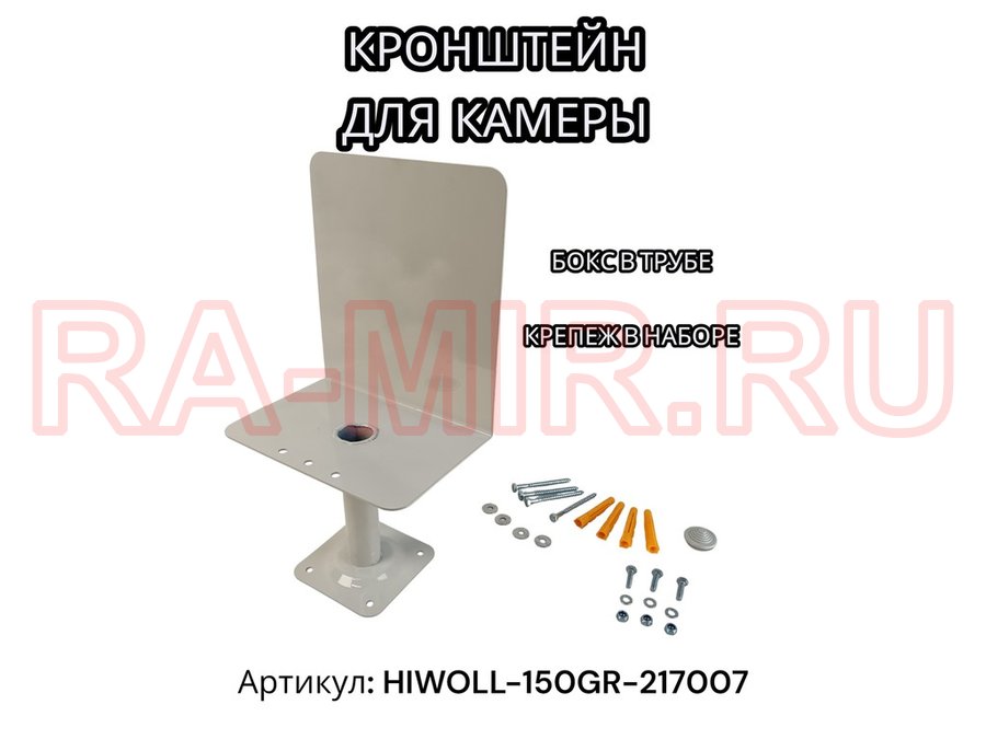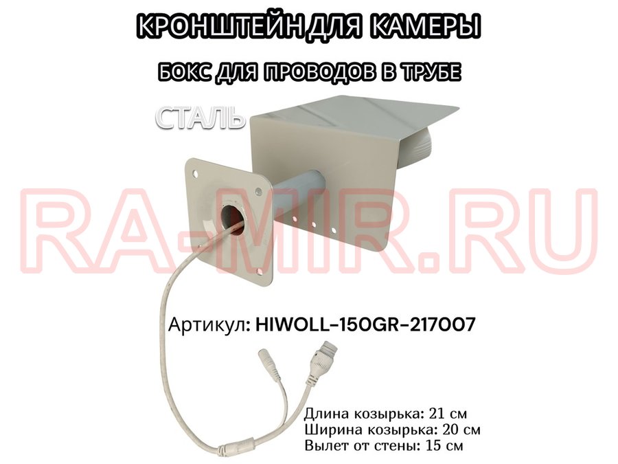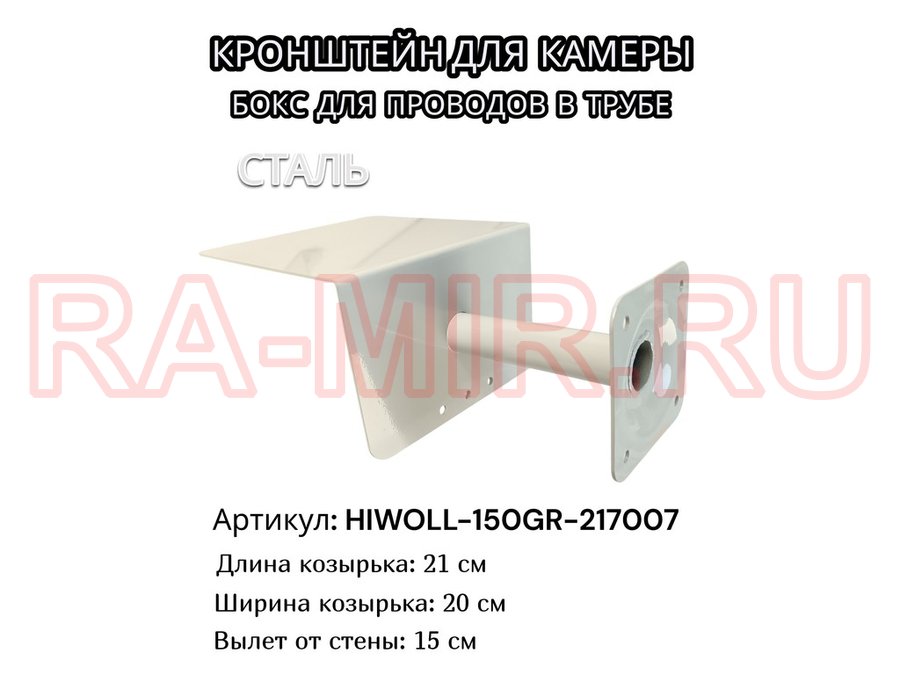 Кронштейн для камеры и прожектора с козырьком "HIWOLL-150GR-217007" серый, вылет 15см, сталь