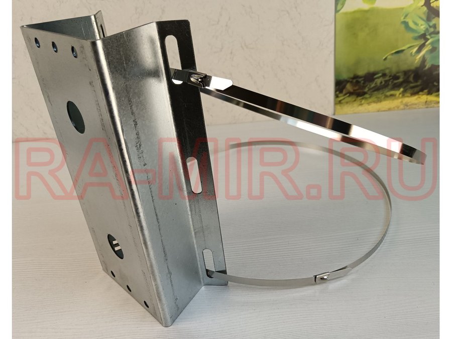 Кронштейн оцинкованный для камеры видеонаблюдения с двумя хомутами на столб "ABIKREP-216978" 24х12см