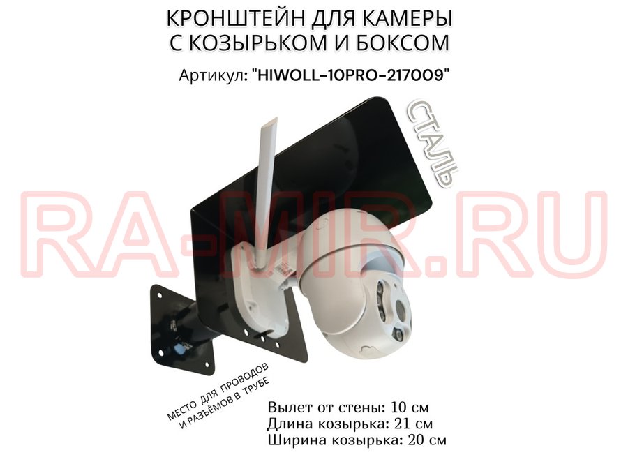 В корзину Купить в 1 клик Кронштейн с боксом и козырьком для видеокамеры "HIWOLL-10PRO-217009" черный, вылет 10см, сталь