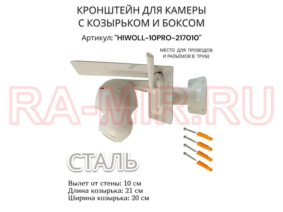 В корзину Купить в 1 клик Кронштейн с боксом и козырьком для видеокамеры "HIWOLL-10PRO-217010" серый, вылет 10см, сталь