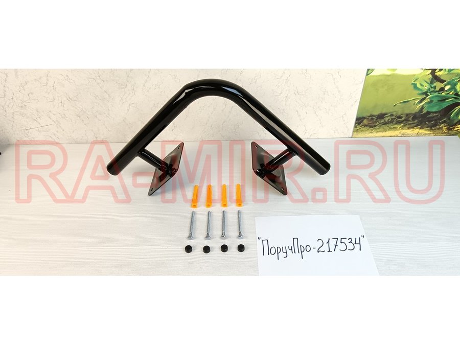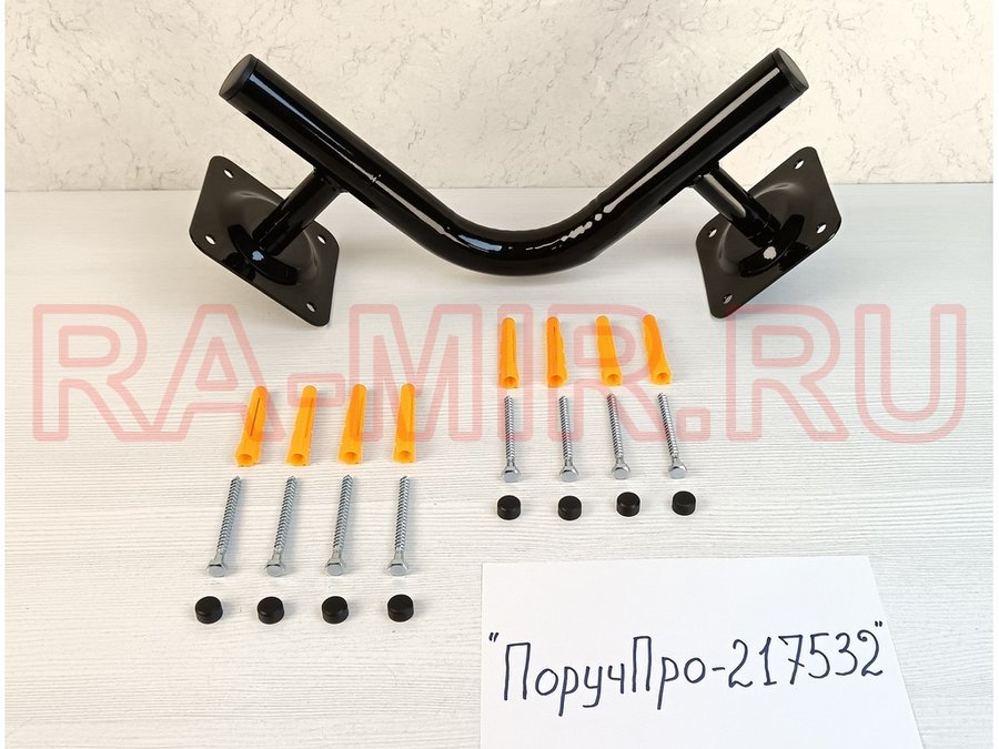 Поручень угол 90 гр, внутренний, 25х25см "ПоручПро-217532" вылет 10см, черный, 2 опоры, диаметр 32мм