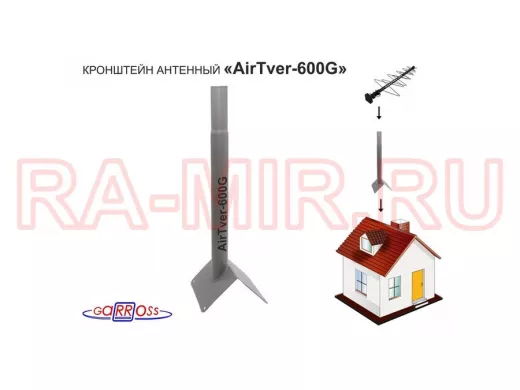 Заказать звонокКронштейн антенный на конёк крыши, диаметр 51мм "AirTver-600-126087" серый высота 60см обжата 120мм