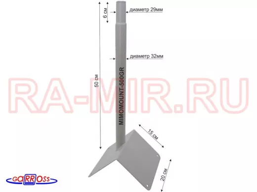 Заказать звонокКронштейн на конек для антенн, диаметр 32мм "MIMOMOUNT-500GR-105610" серый, обжатый, высота 50 см