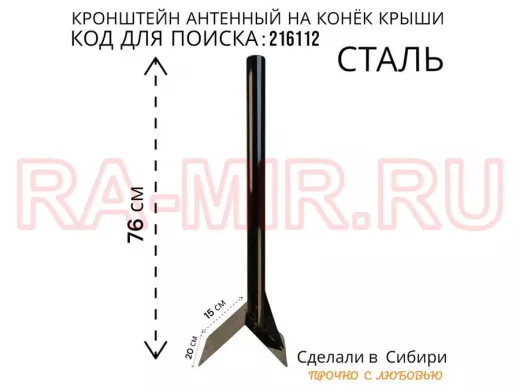 Заказать звонокКронштейн антенный на конёк крыши "КОНЁК-V4-700BK-216112" черный,высота 70 см, диам.50мм с заглушкой