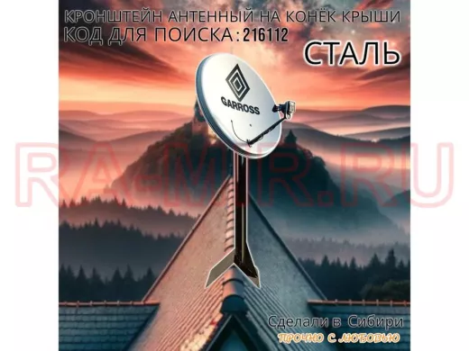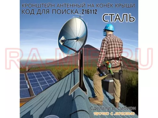 - Кронштейн усилен 3-мя стальными косынками, это позволяет получить большую прочность для крепления спутниковых тарелок 0,6м и любых других антенн.
