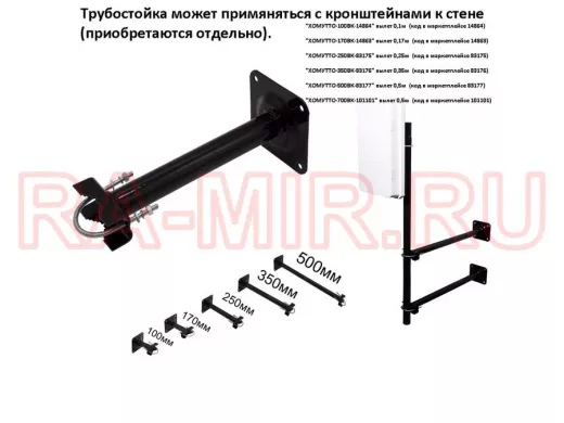 Применяется для наращивания длины антенных кронштейнов, совместима с креплениями к стене и на конек крыши:
