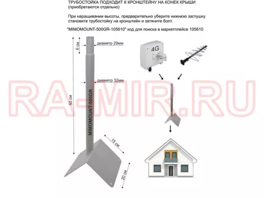 2. С коньковым кронштейном "MIMOMOUNT-500GR-105610" (код для поиска в маркетплейсе 105610)