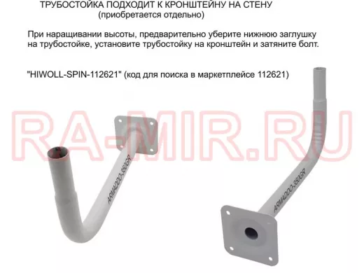 3. Г-образным обжатым кронштейном к стене: "HIWOLL-SPIN-112621" (код для поиска в маркетплейсе 112621)