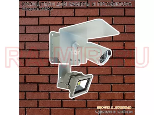 Заказать звонокКронштейн для камеры и прожектора с боксом с пластиной и козырьком"HIWOLL-215417" сталь, серый