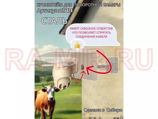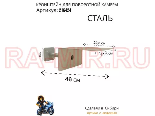 - Стальной кронштейн позволяет вынести камеру от стены на 25 см.