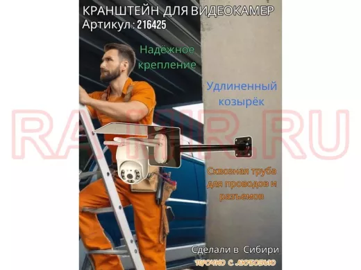- Стальной кронштейн позволяет вынести камеру от стены на 50 см.