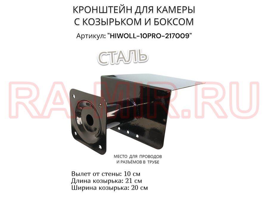 Кронштейн с боксом и козырьком для видеокамеры "HIWOLL-10PRO-217009" черный, вылет 10см, сталь