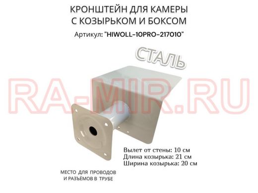 Кронштейн с боксом и козырьком для видеокамеры "HIWOLL-10PRO-217010" серый, вылет 10см, сталь