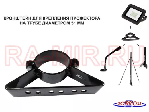 - Кронштейн предназначен для крепления светодиодного прожектора на мачте, кронштейне, трубе, опоре забора диаметром 50 мм