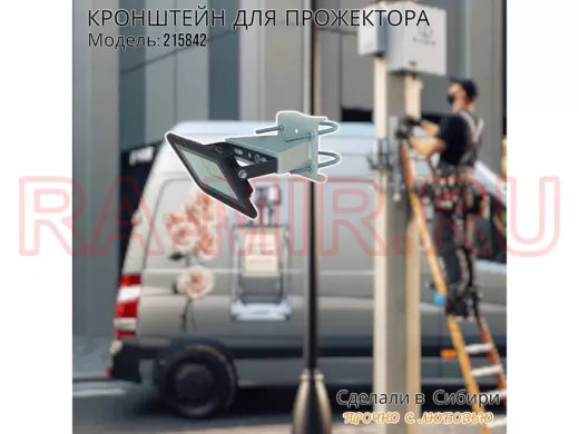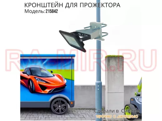 - Кронштейн позволяет быстро и надежно зафиксировать прожектор на трубе.