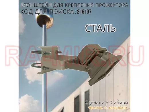 Заказать звонокКронштейн усиленный для крепления прожектора на трубе до 51мм "ПРОЖЕКРЕП-216107" сталь, цвет серый