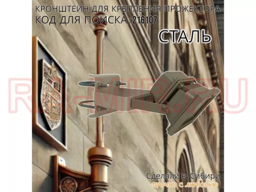 Кронштейн усиленный для крепления прожектора на трубе до 51мм "ПРОЖЕКРЕП-216107" сталь, цвет серый