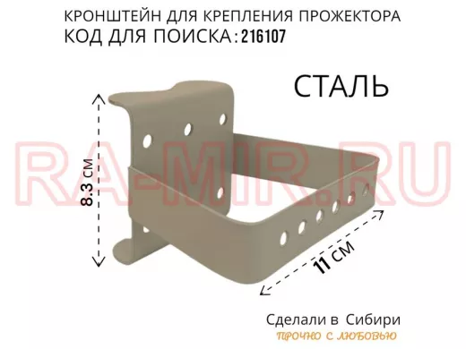 - Кронштейн усиленный предназначен для крепления светодиодных прожекторов на трубе диаметром от 15 до 51мм.