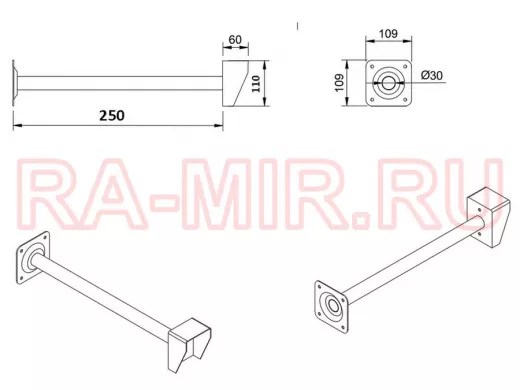 - Диаметр центрального отверстия в основании (к стене) - 30 мм