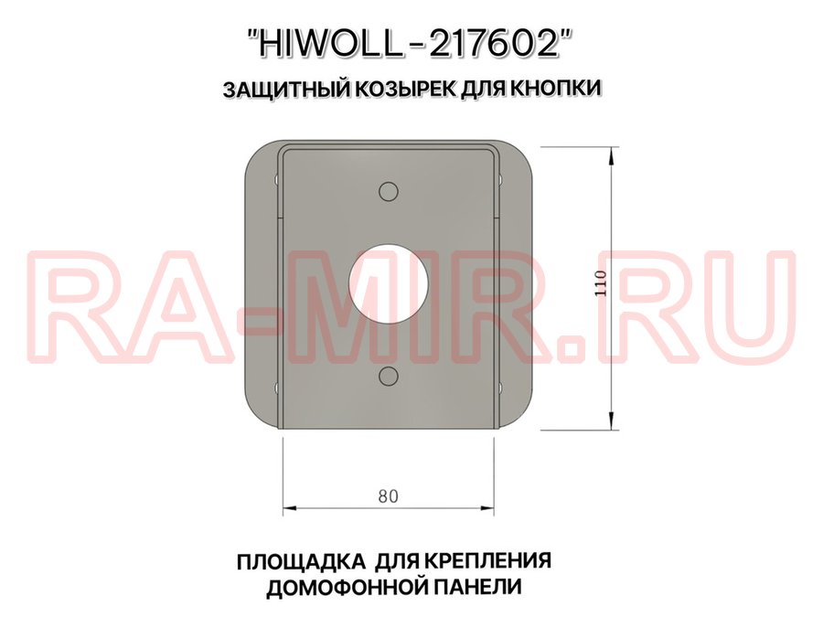Заказать звонокСтальной защитный козырек для кнопок выхода с вылетом от стены 100см "ВЫЗОВКРЕП-217602" серый,8х11см